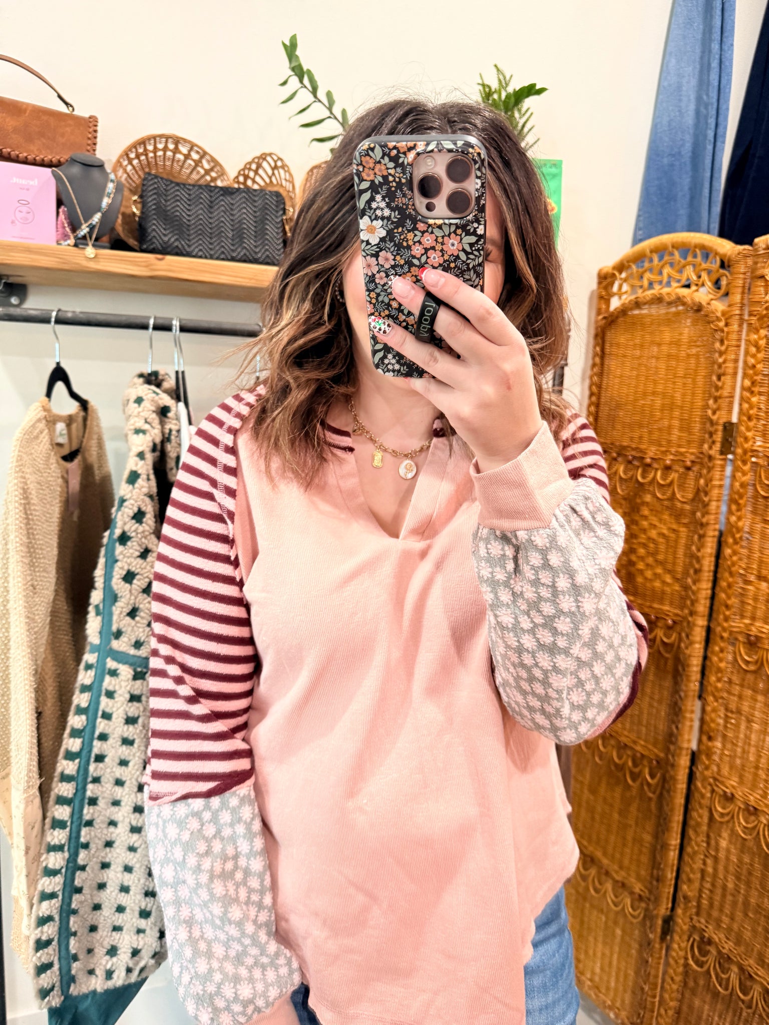 Floral and stripe top