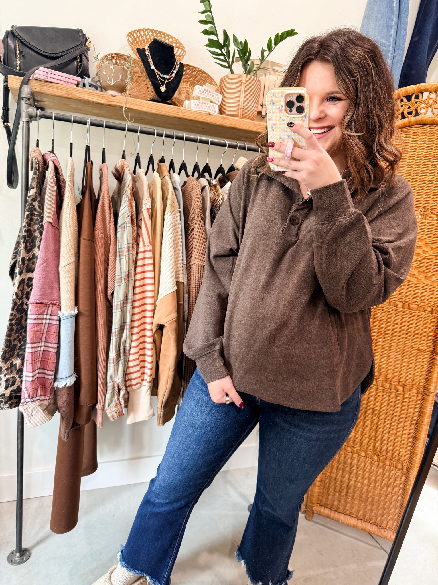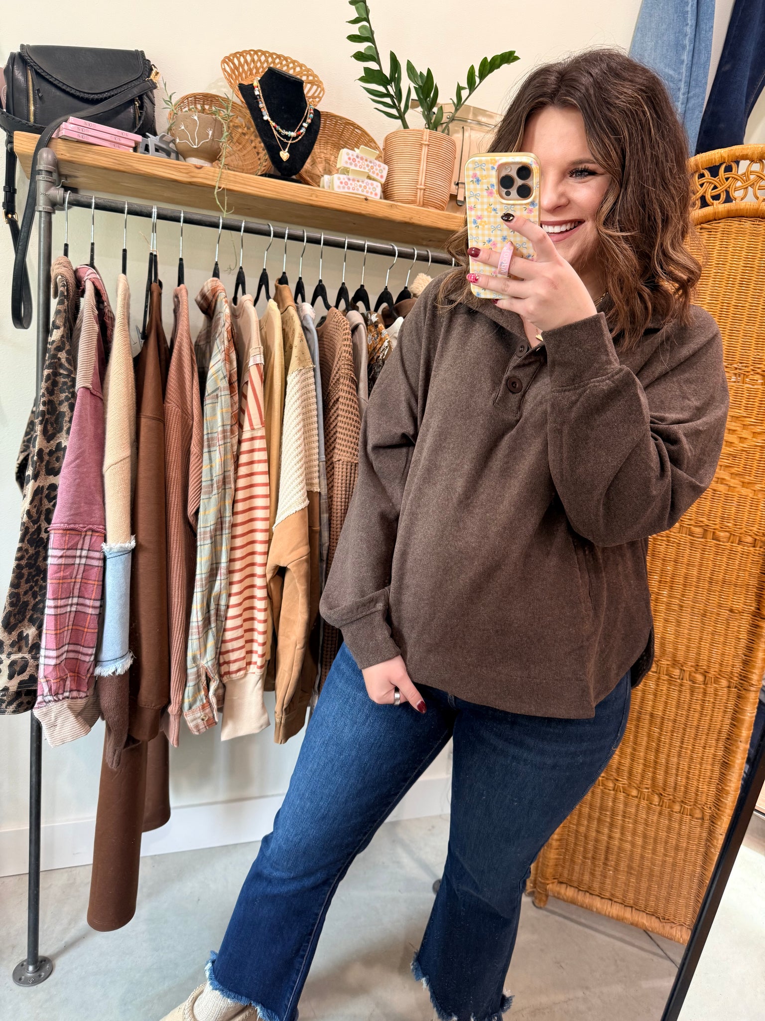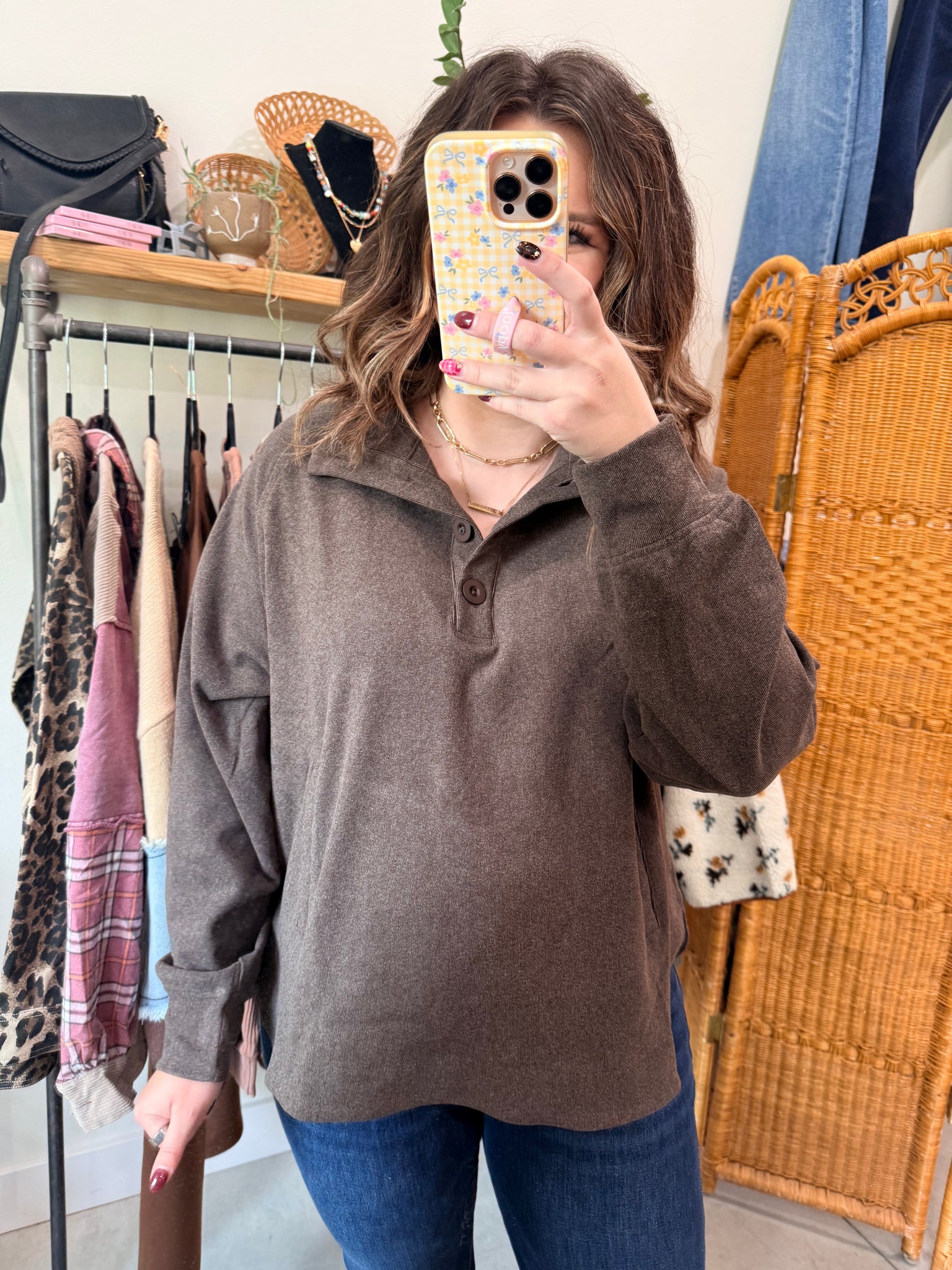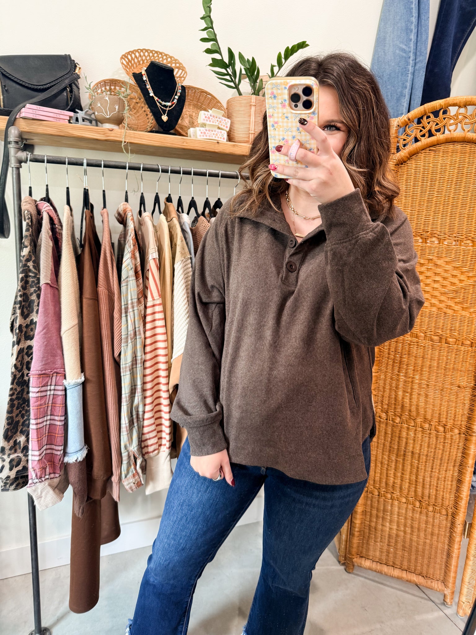 Brushed Ribbed Button Top