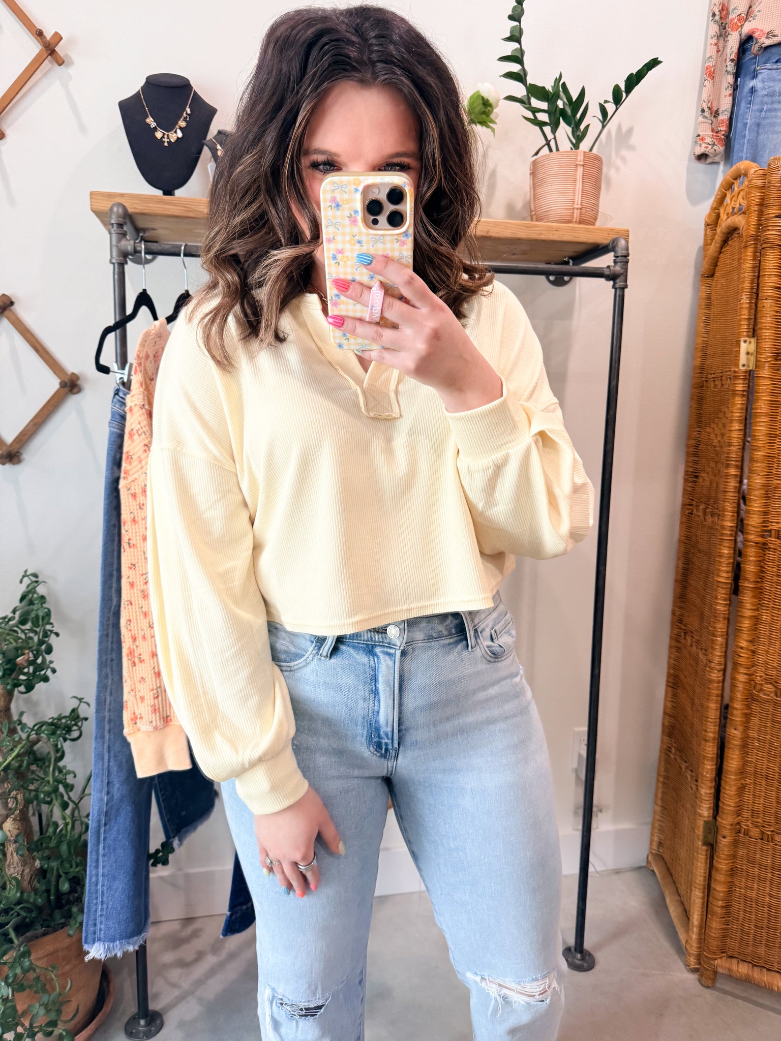 Butter Yellow Split Neck Top