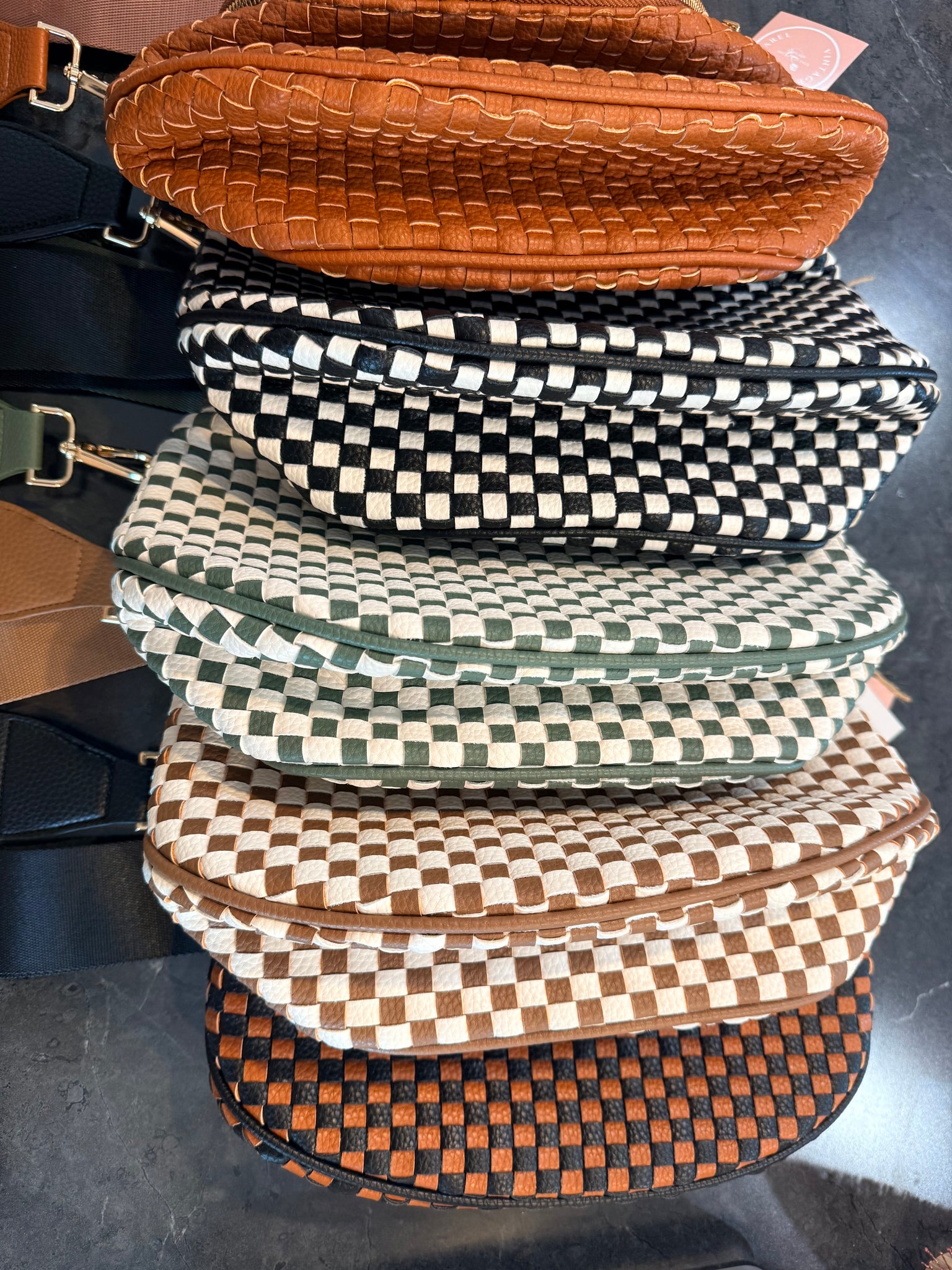 Checkered Bum Bag features a woven checkered design paired with durable gold hardware, offering both style and functionality. Its adjustable crossbody strap ensures a comfortable fit for all-day wear, while the trendy color options make it an ideal accessory for fall outfits. Perfectly balancing fashion and practicality, this bum bag complements your seasonal wardrobe with ease.